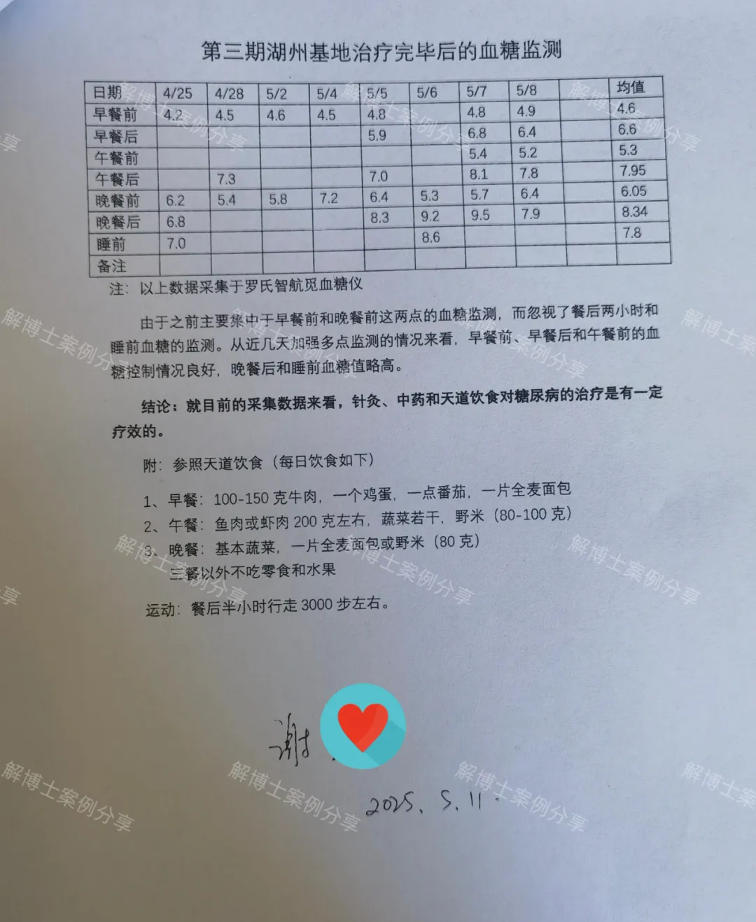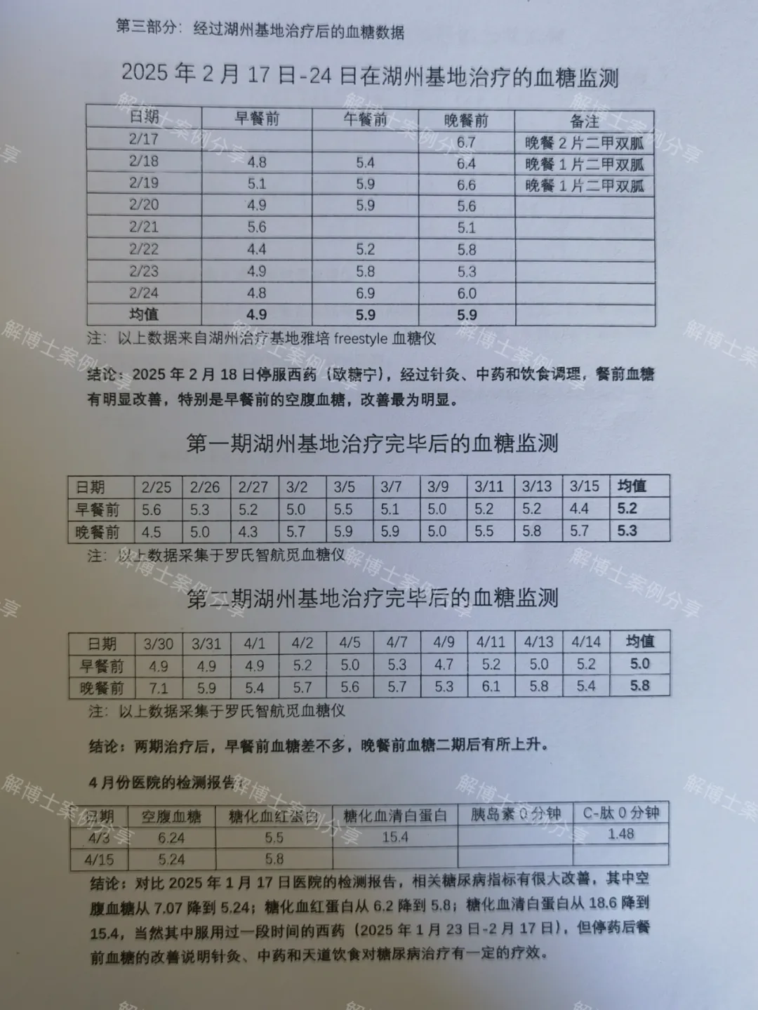 2025年2月开始通过针灸、中药调理及“天道饮食”,4月结束后,空腹、糖化指标已有改善,是正常范围。