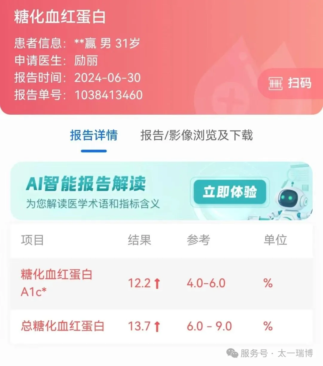 西医诊断明确而严峻:II型糖尿病,且处于糖尿病酮症酸中毒的高风险状态!医生严肃告知:必须立即住院,通过佩戴胰岛素泵进行强化控糖治疗。